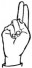 На ћирилици написано ЛАБУДА БИНИЋ састоји се из 11 слова [?]. Исписано ћириличном једноручном азбуком за глувонеме: